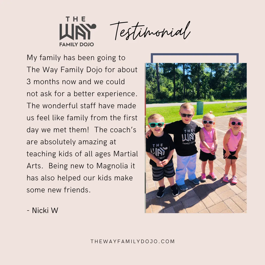 At The Way Family Dojo we provide world-class Martial Arts training for Woodlands, Magnolia, Montgomery, Spring and Conroe residents.